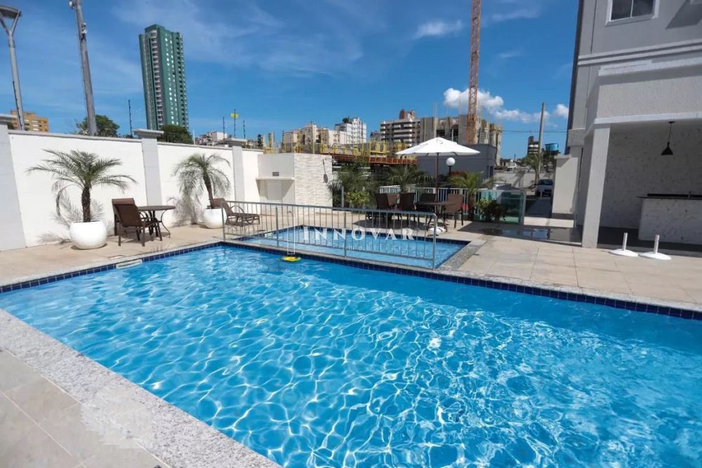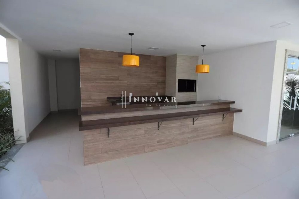 Condomínio com salão de festas e piscina.