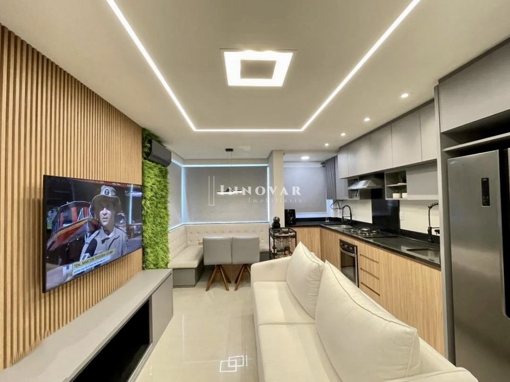 O imóvel totalmente mobiliado conta com 2 dormitórios, banheiro social, sala de estar, sala de jantar e cozinha em ambiente integrado, área de serviço e 1 vaga de garagem.