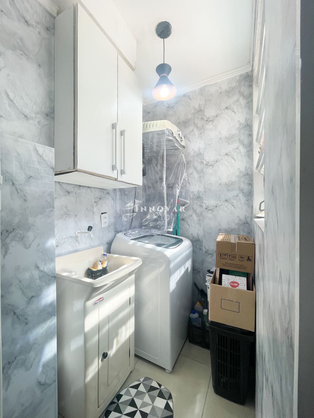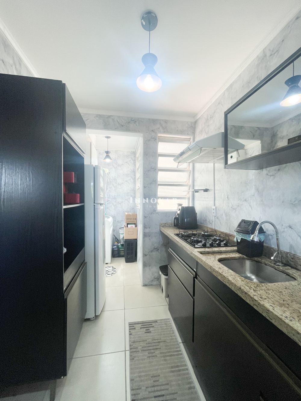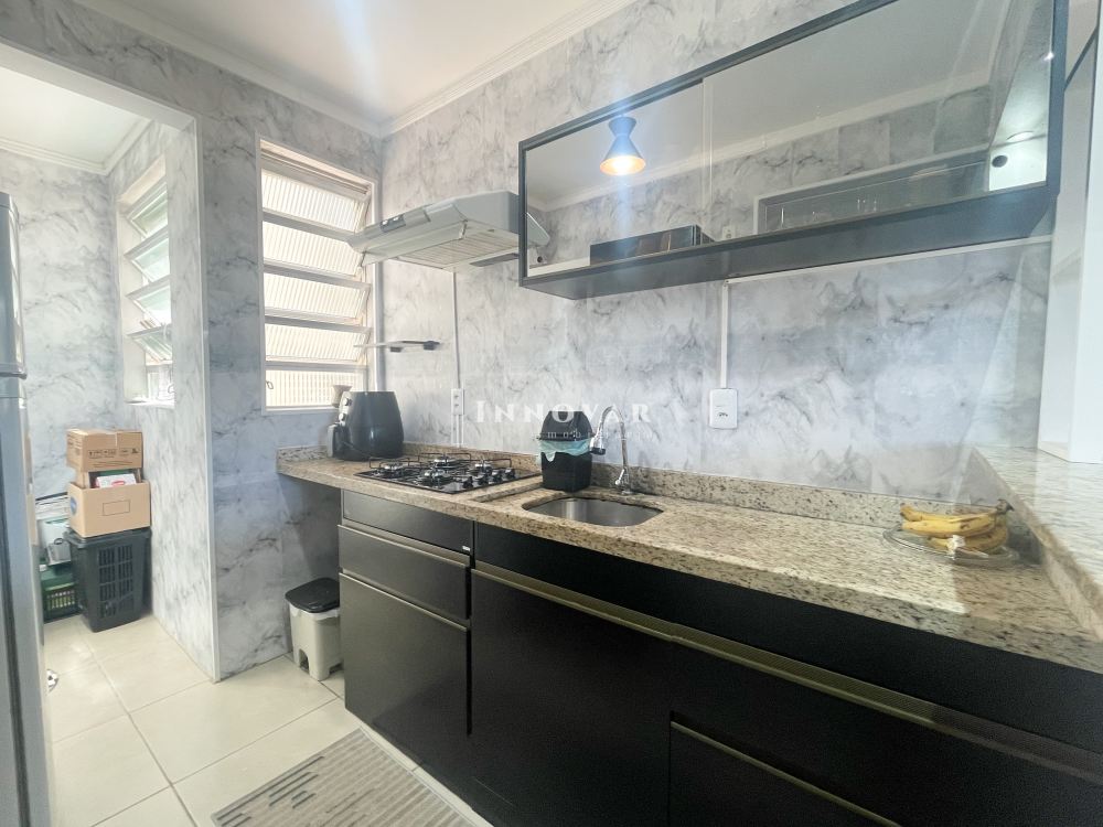 O imóvel é constituído de sala de estar e jantar, cozinha, 01 banheiro social, lavanderia, 02 dormitórios e 01 vaga de garagem. Fica o guarda-roupas e 03 ar condicionados.