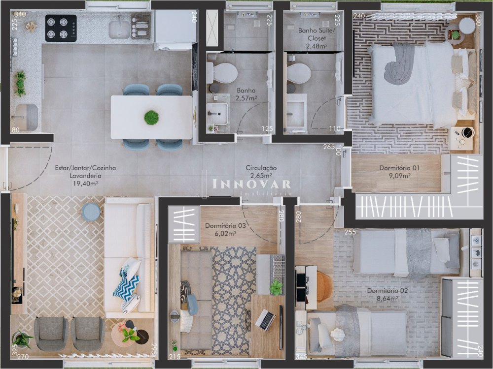 Ótimos Apartamentos de 3 dormitórios em condomínio fechado, infraestrutura, excelente localização acesso fácil a Guia Lopes e uma vista incrível.