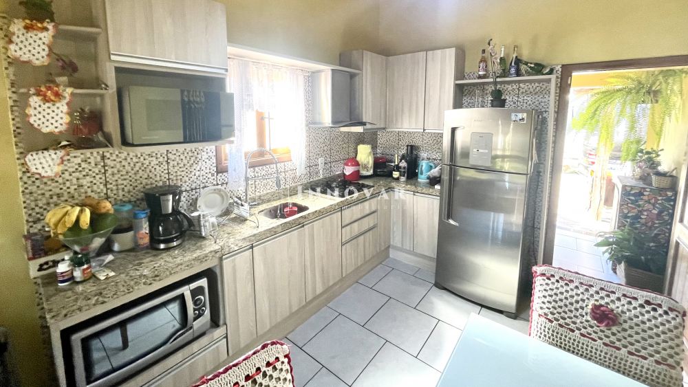 Casa térrea com dois dormitórios, sendo o quarto principal com banheiro. Fica a cozinha sob medida.