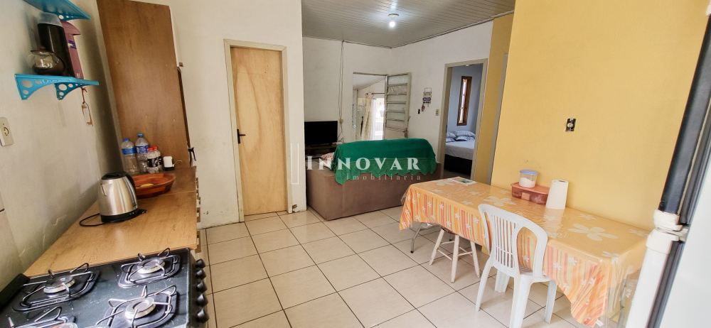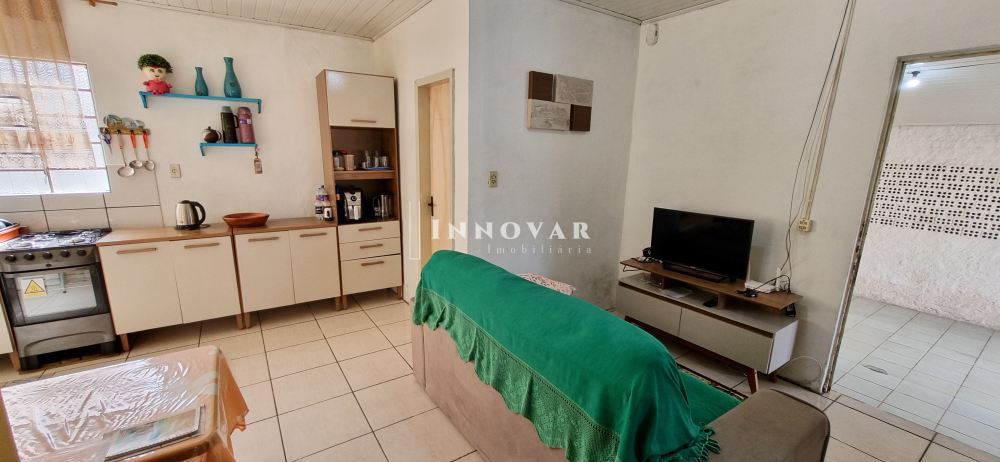 Casa de esquina com 02 dormitórios (01 suíte), sala, cozinha, garagem fechada com churrasqueira e lavanderia.