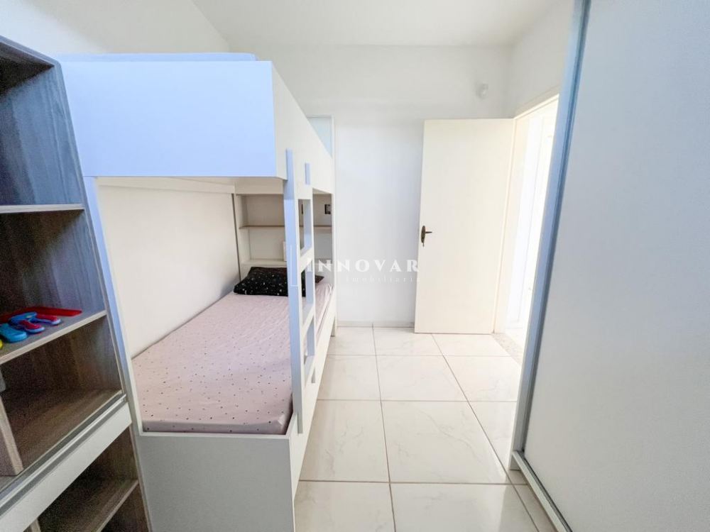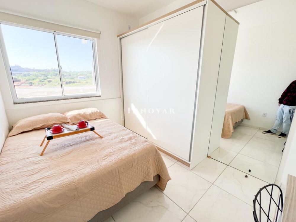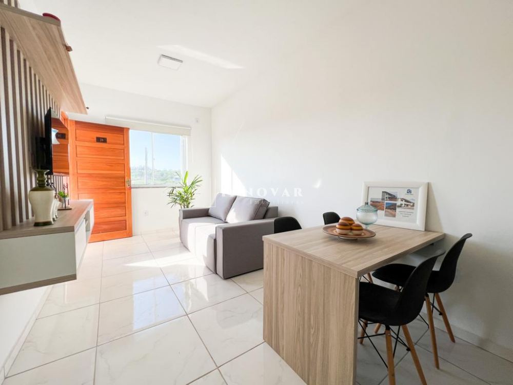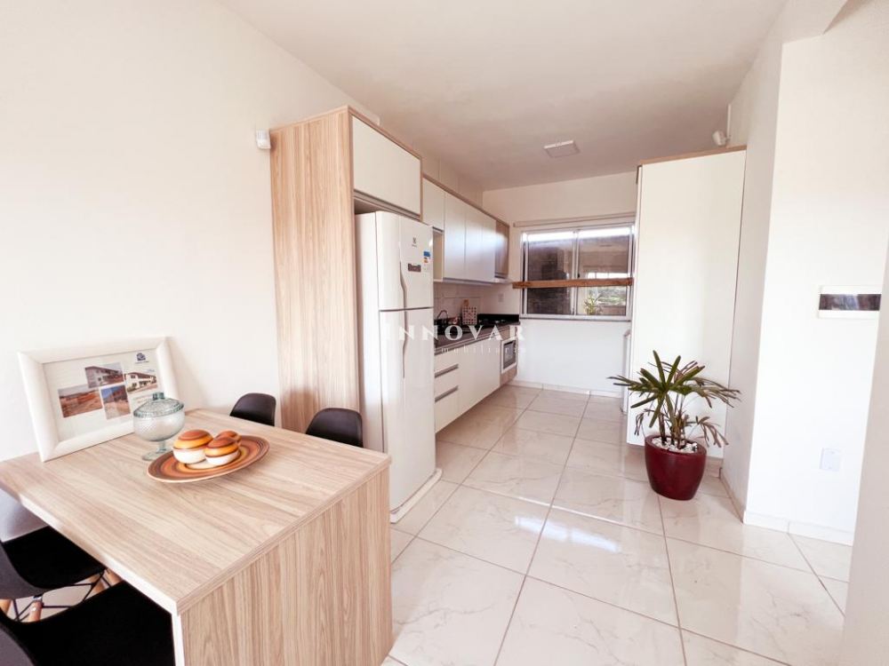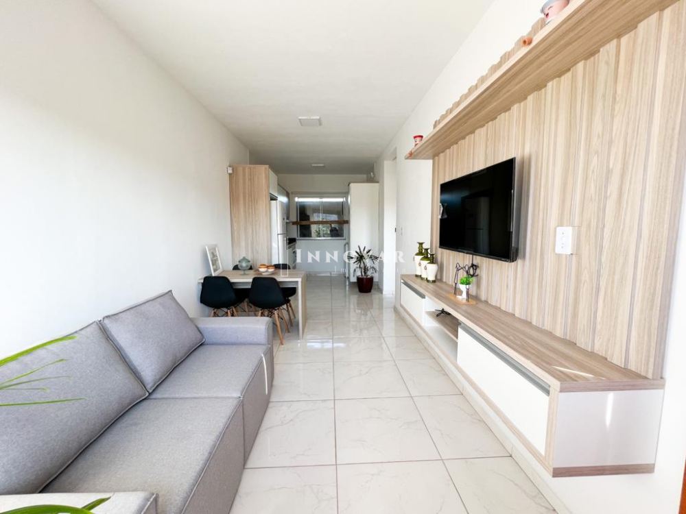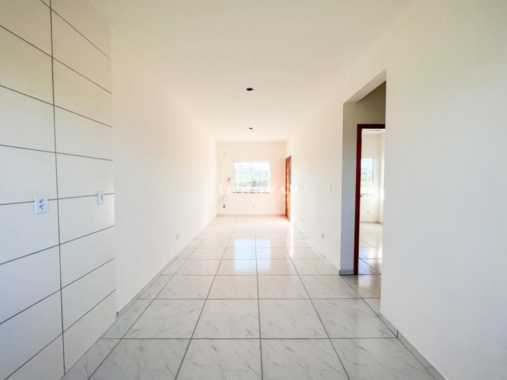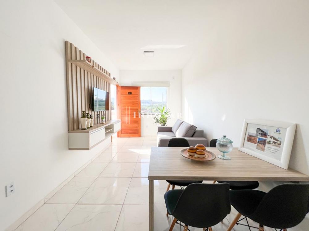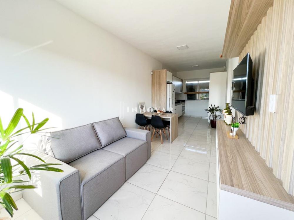 Sala e cozinha integradas, áreas de serviço e 1 vaga de estacionamento privativa.