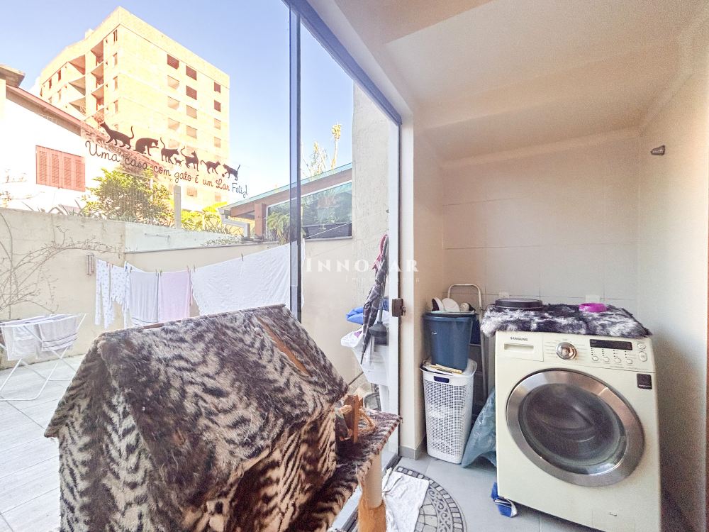 No térreo estão as áreas de convivência social, com sala de estar e jantar integradas, cozinha e lavanderia separadas do living, pátio frontal com área para 02 veículos (área coberta para 01 carro) e amplo nos fundos.