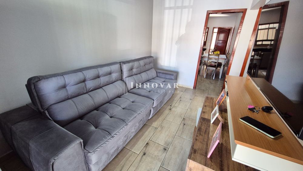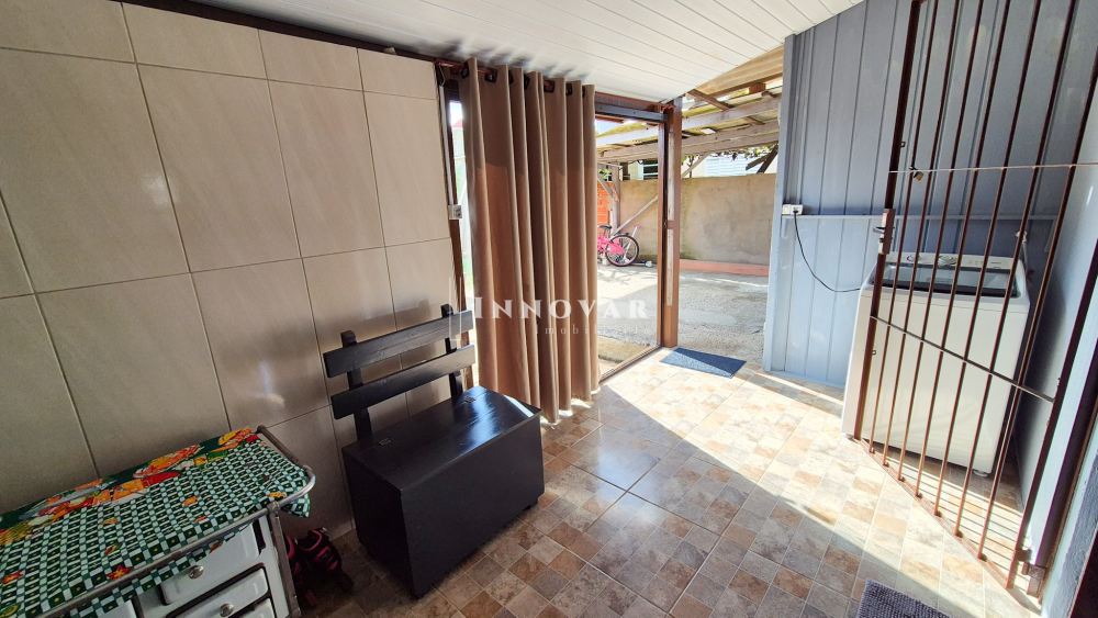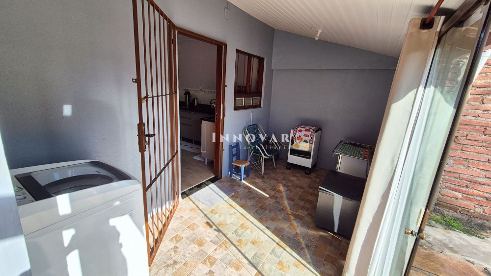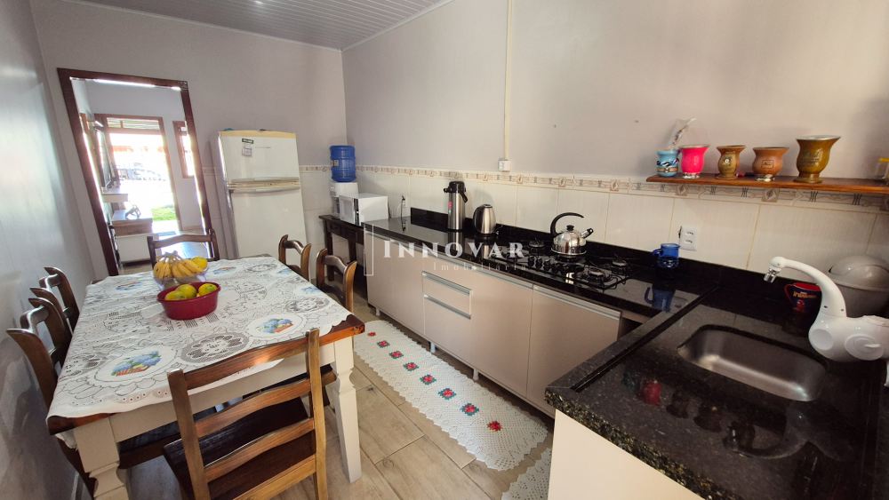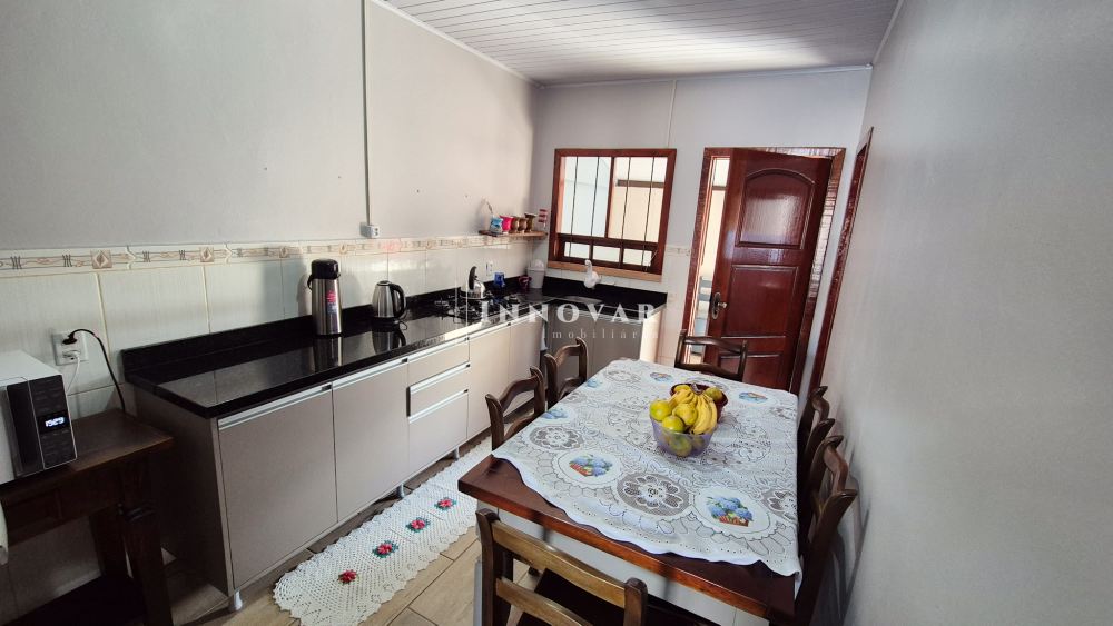 Conta com 03 dormitórios, sala e cozinha integradas, mais uma área fechada nos fundos que pode ser uma segunda cozinha com fogão a lenha e banheiro.