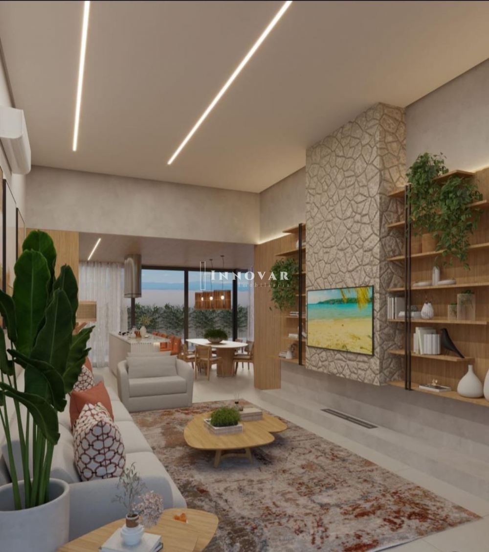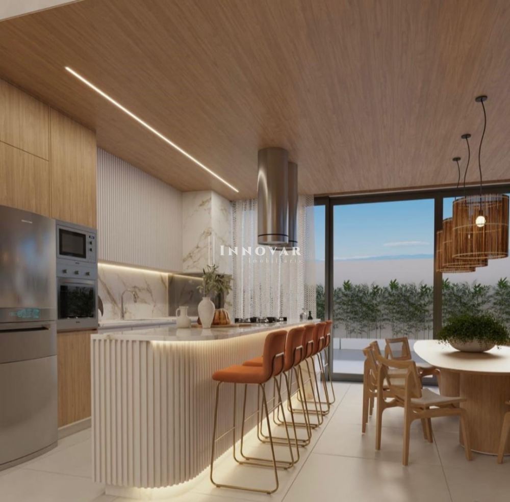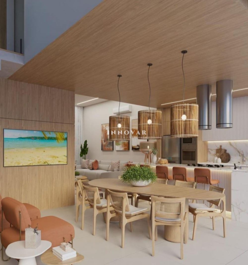 • Espaços fluidos e multifuncionais: cozinha gourmet integrada à sala, área gourmet coberta e suítes privativas;