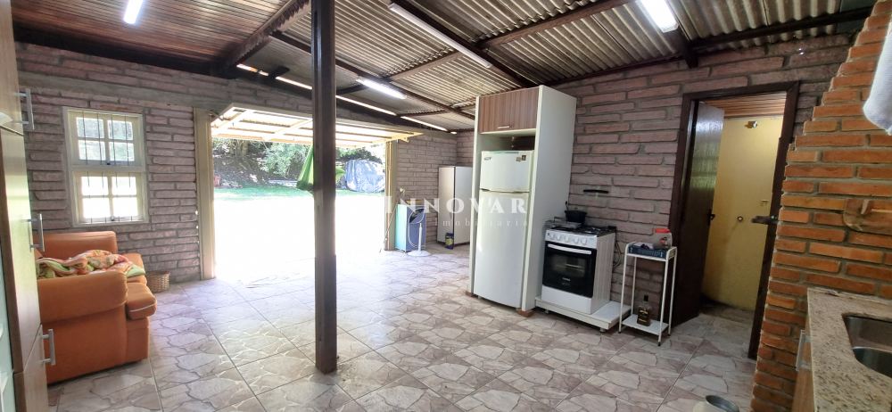 Rua asfaltada na frente, toda arborizada, com vertente e uma bela casa estilo rustico com 03 dormitórios, 02 banheiros, cozinha com churrasqueira e uma grande varanda para tomar seu chimarrão todas as tardes ouvindo o barulho dos pássaros.