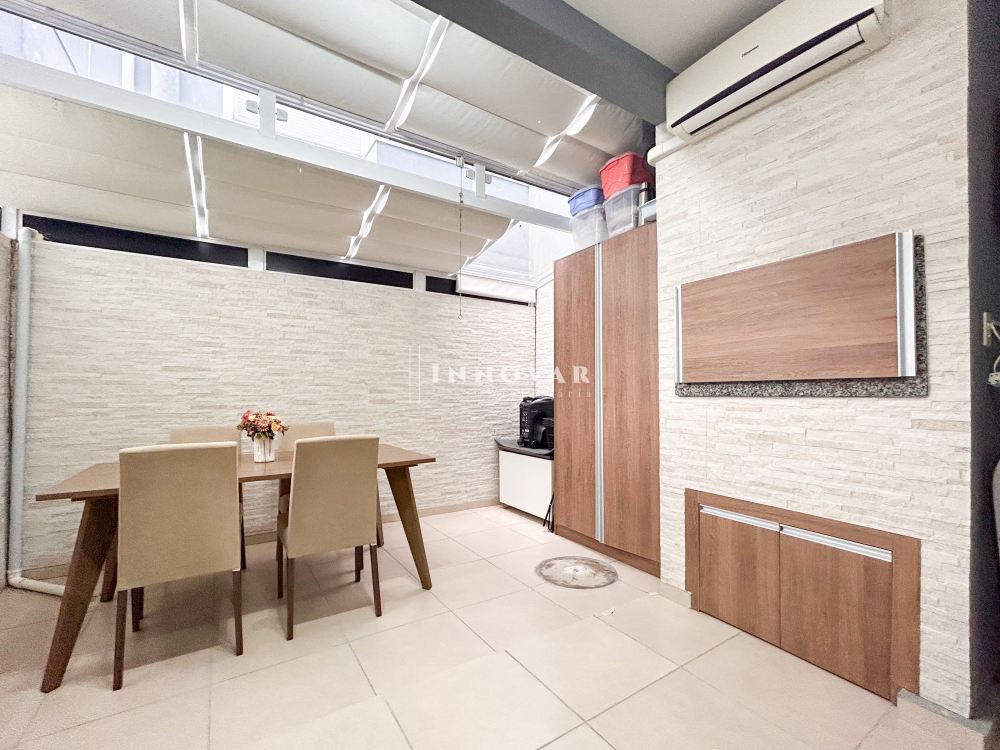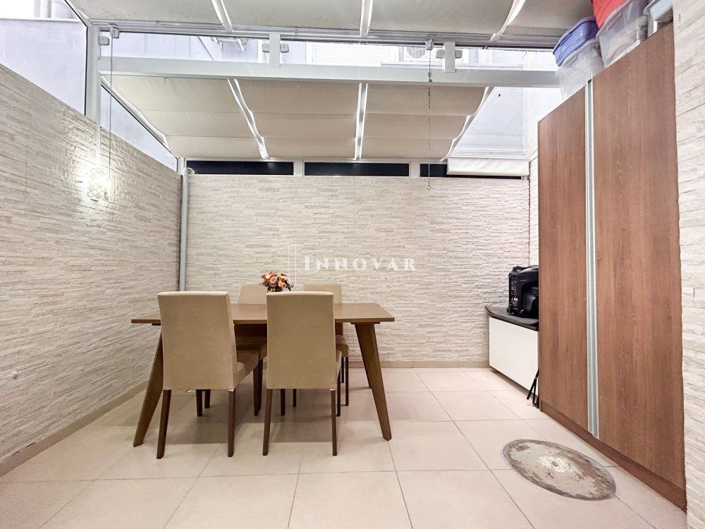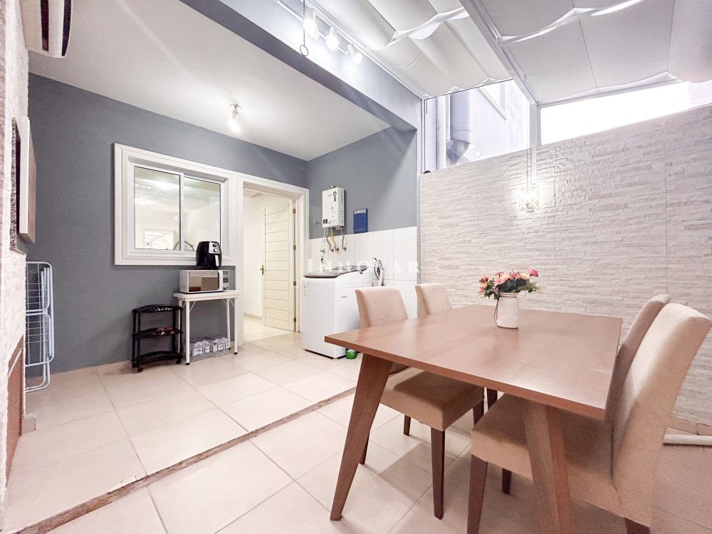 No térreo estão as áreas de convivência social, com sala de estar, cozinha americana, e pátio amplo e coberto nos fundos, com sala de jantar e área gourmet.