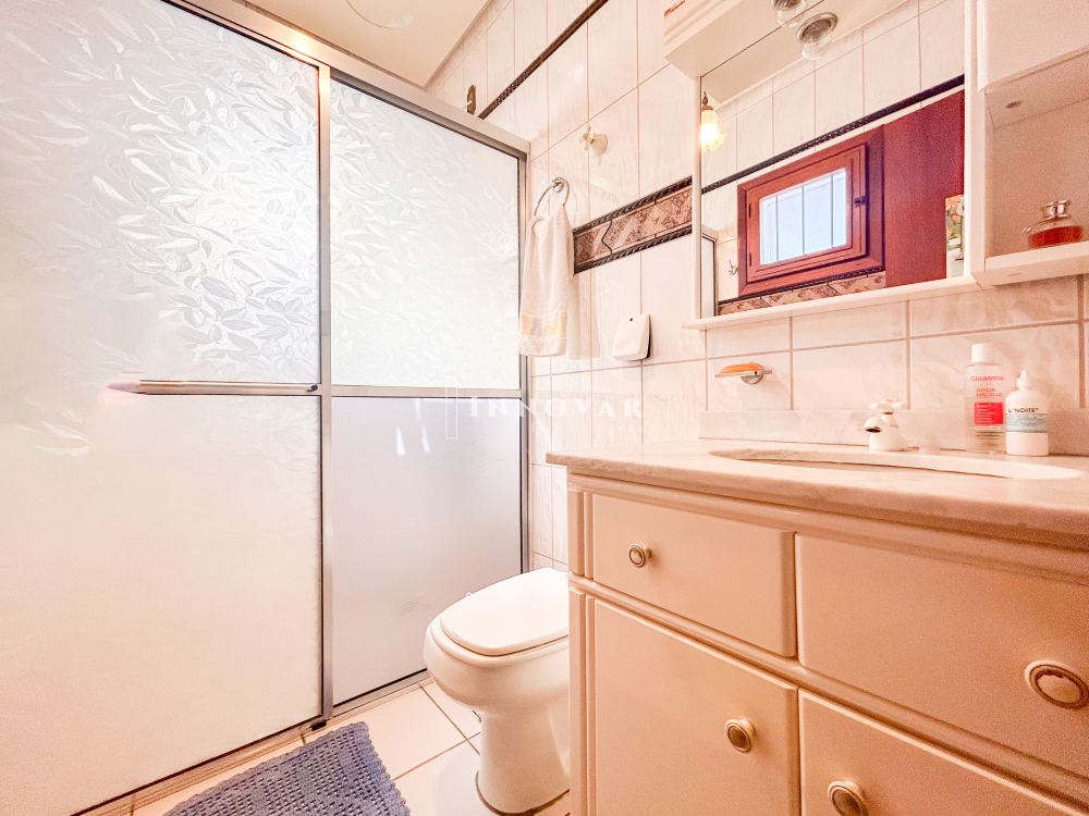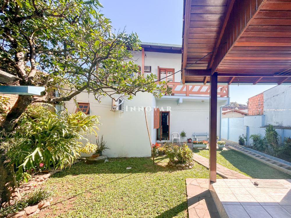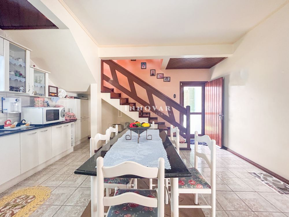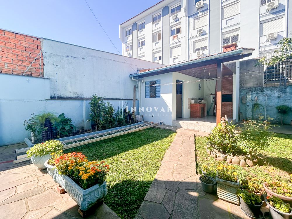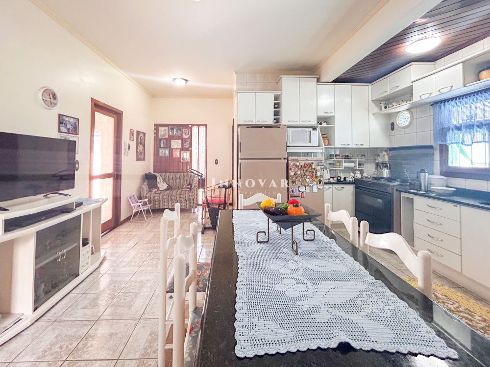 O pavimento térreo possui uma ampla cozinha com copa, 1 quarto, 2 banheiros e garagem. Nos fundos, um anexo com churrasqueira, lavanderia e lavabo.