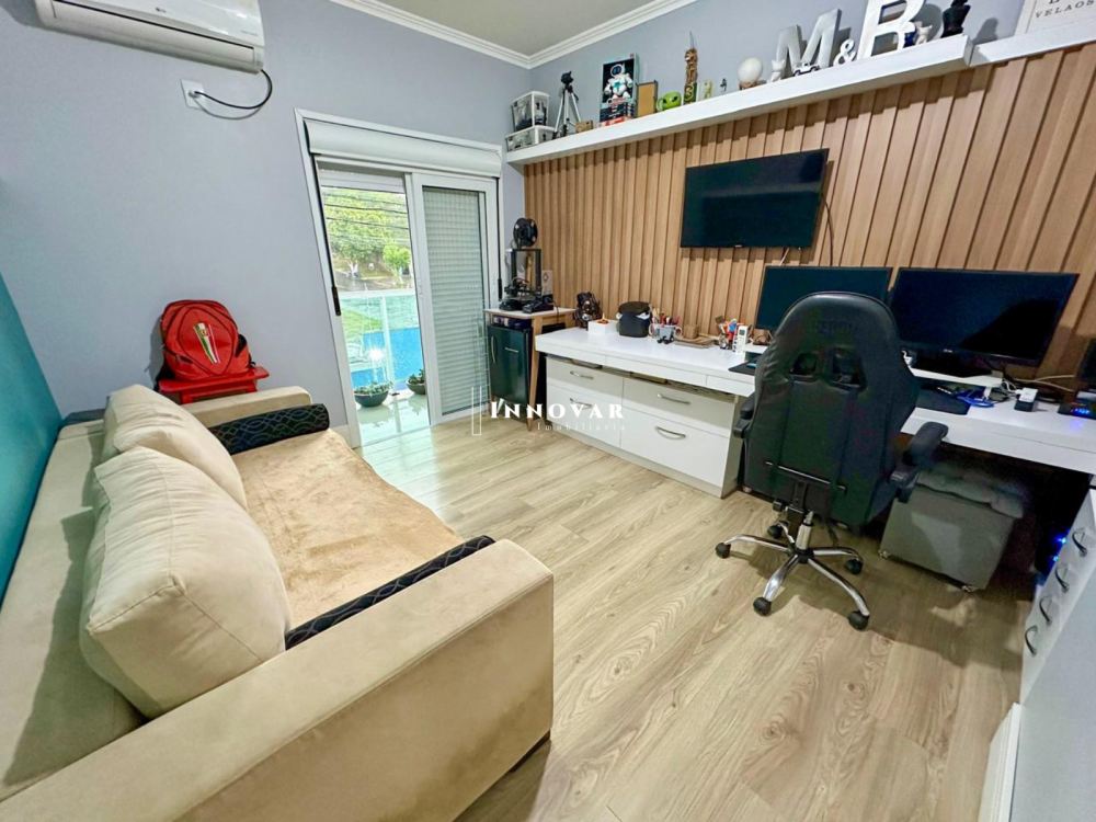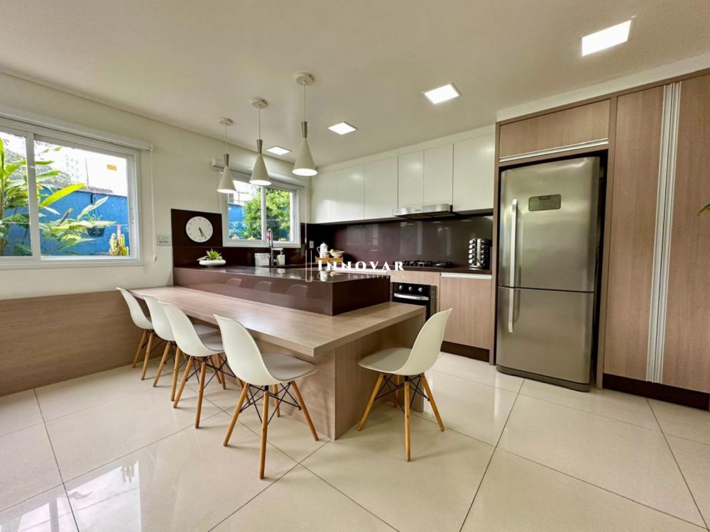 A cozinha estilo americana, possui armários planejados, com um espaço perfeito para o seus momentos gourmet. Além de tudo isso, o imóvel possui lavabo, piscina aquecida, garagem coberta e uma linda vista da sacada do 2º pavimento.