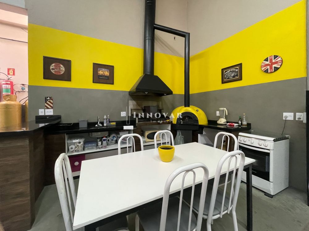 O andar térreo se configura como um pavilhão de 142m² , mezanino, lavanderia, 2 banheiros, depósitos, churrasqueira, garagem para ate 4 carros.