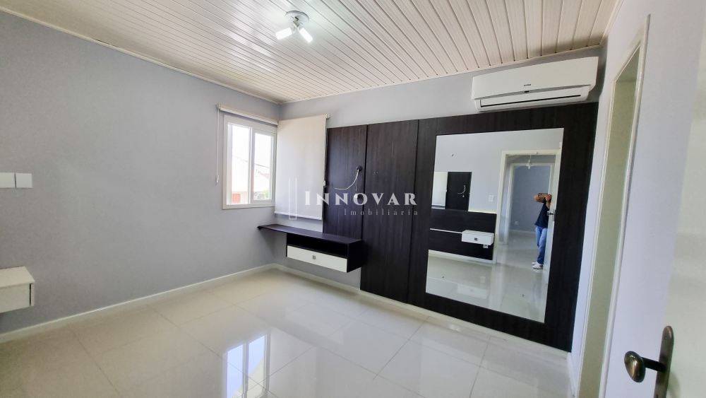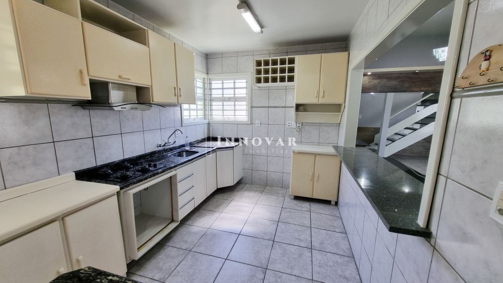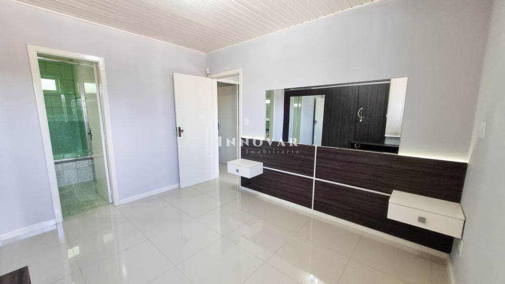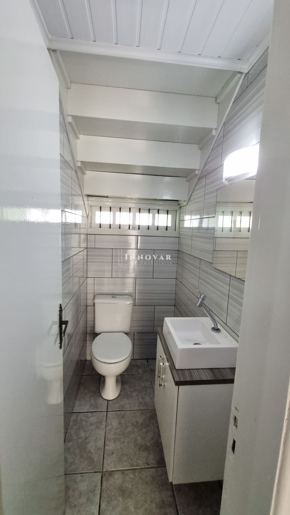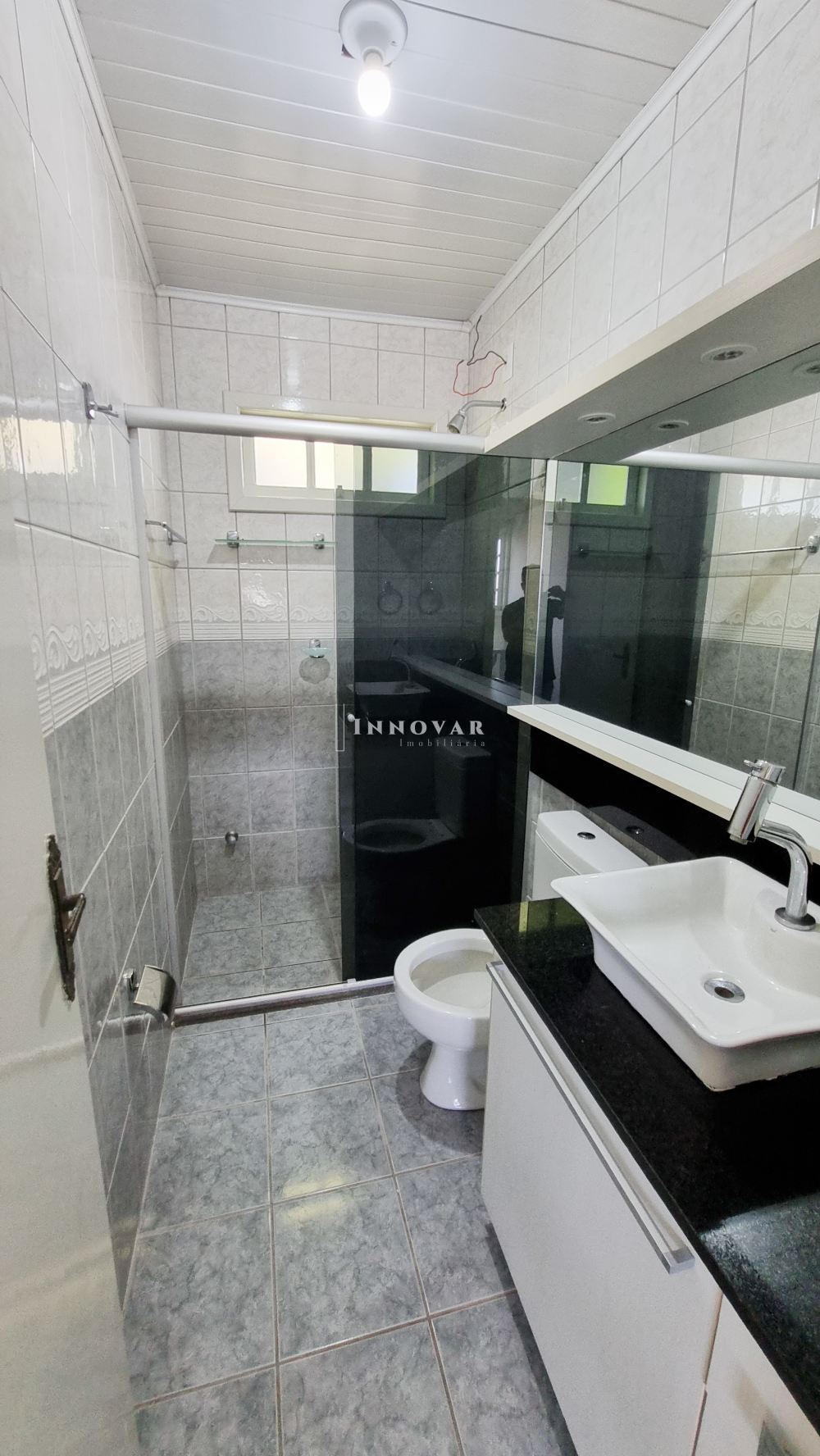 Ela conta com uma suíte master, 02 quartos e um banheiro social na parte superior e com ampla sala integrada com cozinha americana, lavabo, garagem fechada para 01 veículo com churrasqueira e área de serviço.