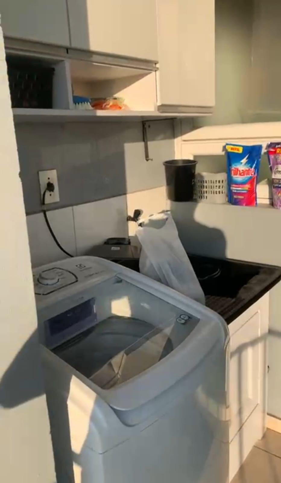 Apartamento de 01 dormitório, possui sacada com churrasqueira e 01 vaga na garagem.