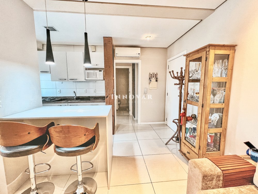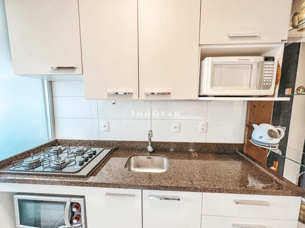 Lindíssimo e espaçoso Apartamento, que conta com um dormitório, ótima metragem privativa (52,35 m²), maior que muito Apartamento de 2 quartos. Conta com móveis feitos sob medida, e uma linda vista livre, podendo ser visto o pôr do sol da janela da sala e do quarto.