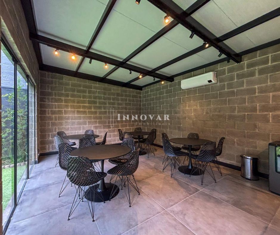 Prédio todo em estilo industrial. Possui elevadores, salão de festas, garagem coberta, jardim, pergolado e playground.