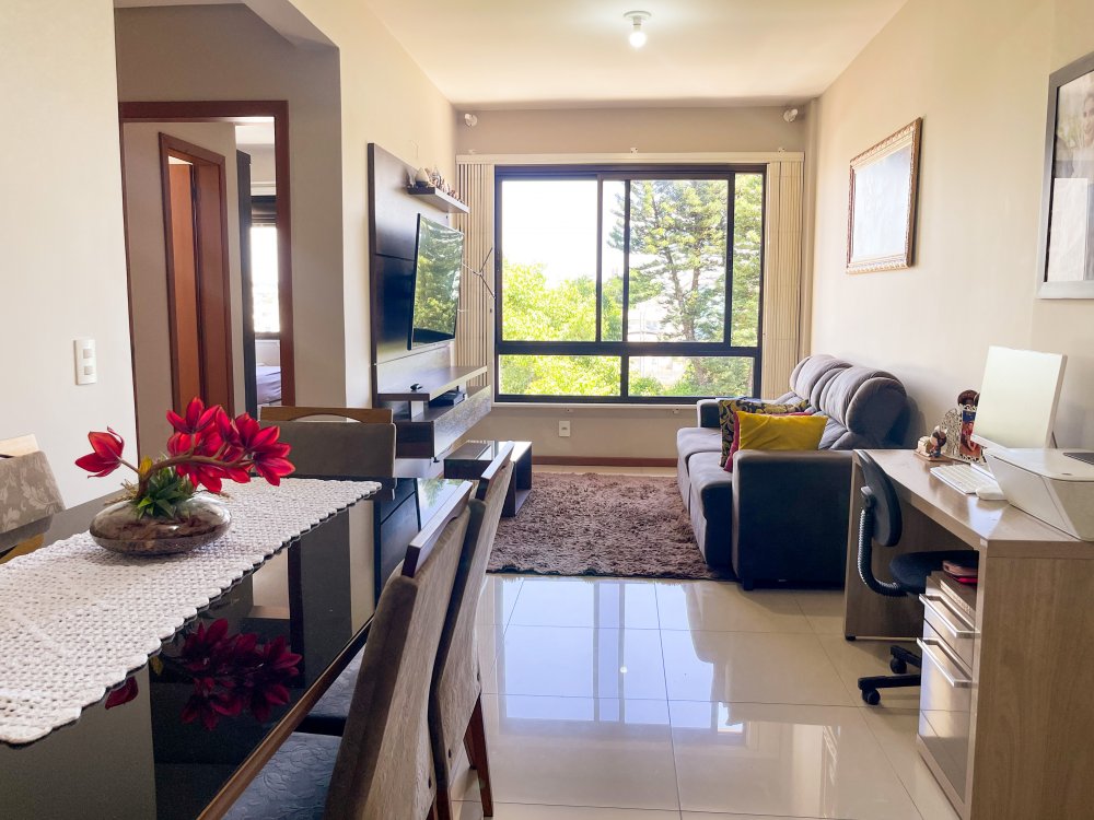 Apartamento amplo de 02 dormitórios, sendo 01 deles suíte, com elevador, ambientes integrados, churrasqueira, espera para água quente e fria, piso porcelanato, e lindos móveis sob medida.