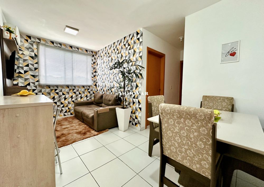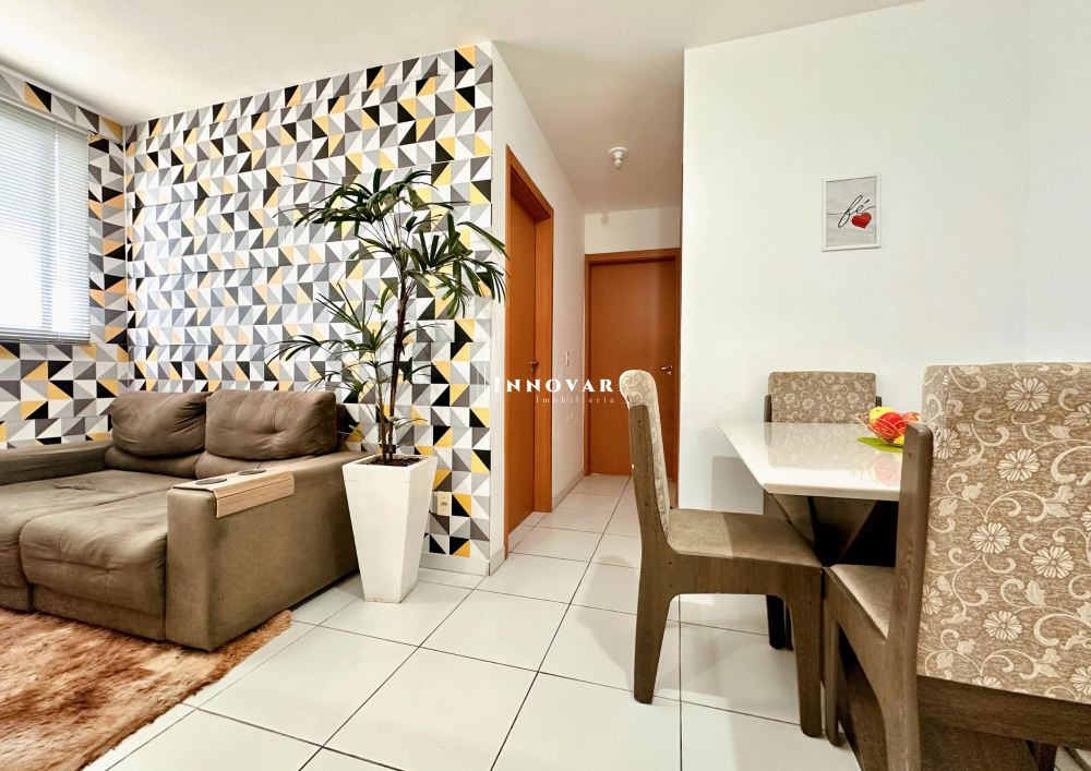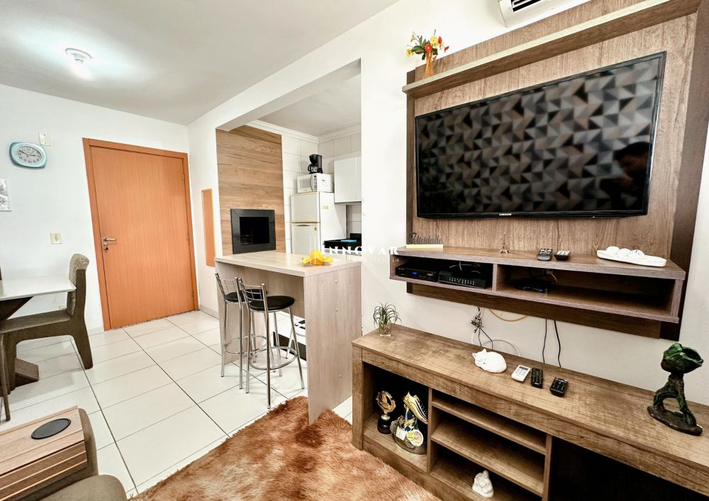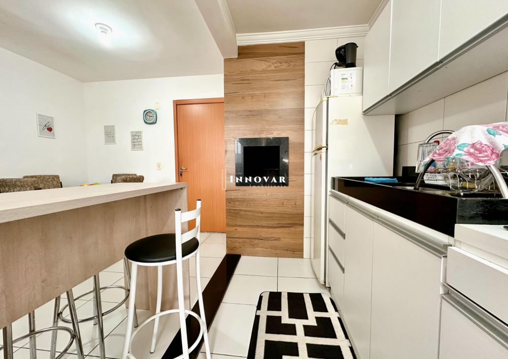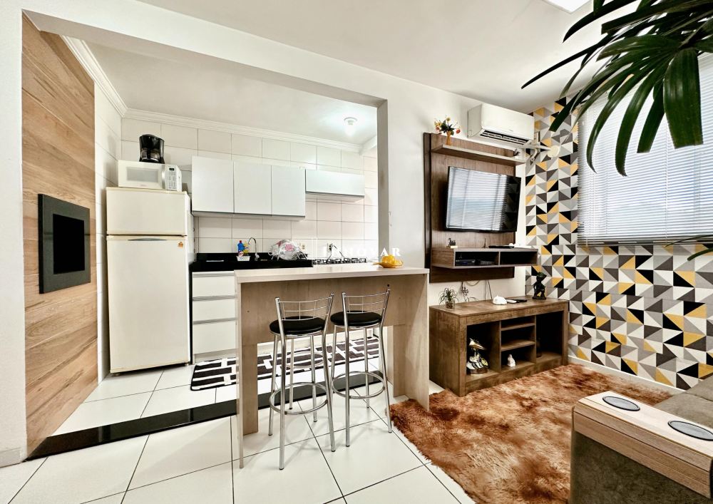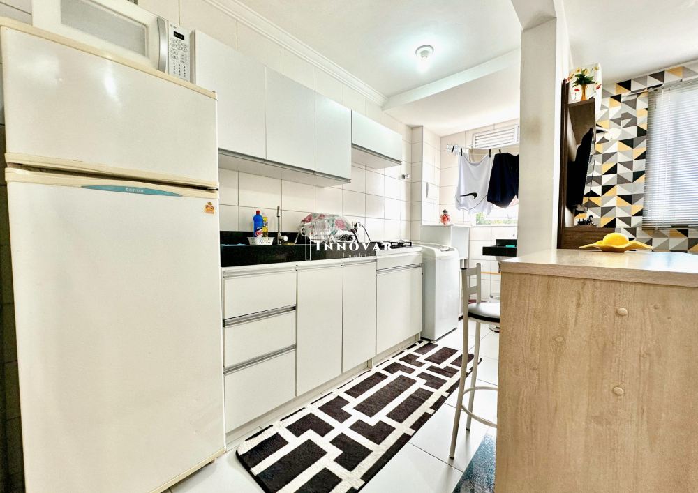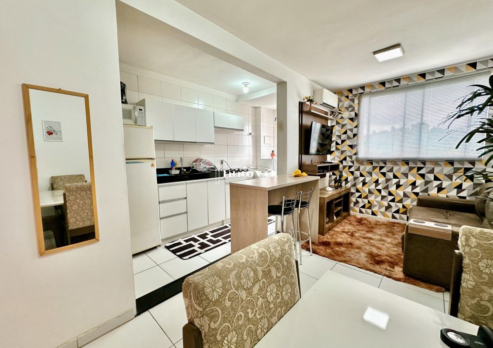 Apartamento possui 47m² bem distribuídos, contando com sala de estar e jantar, cozinha com churrasqueira, 02 dormitórios e 01 banheiro social.