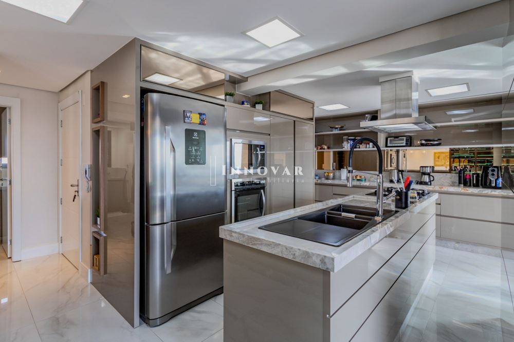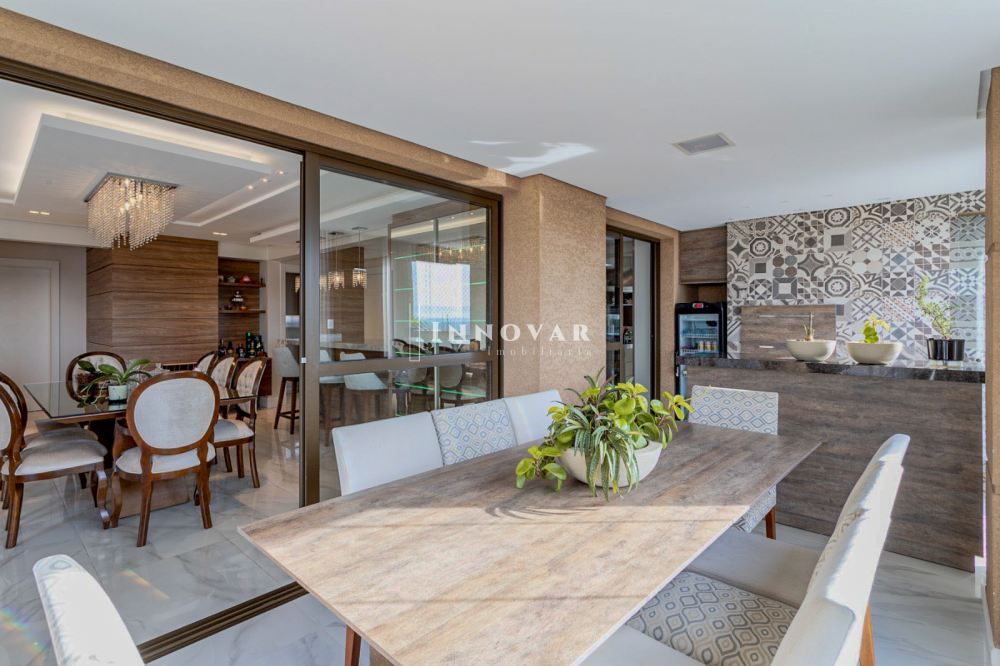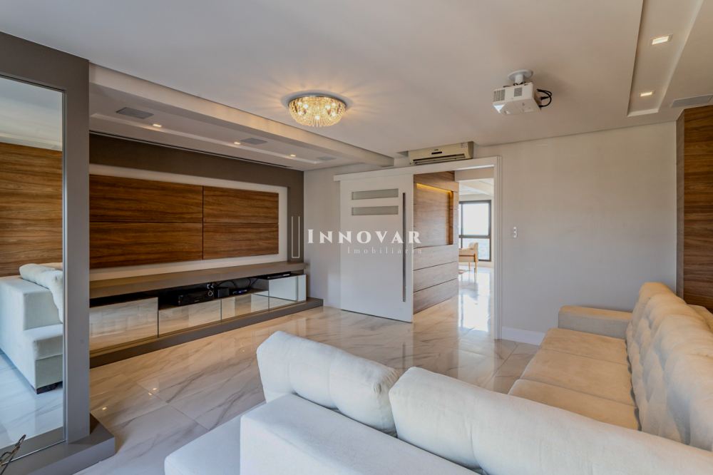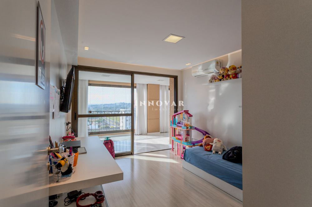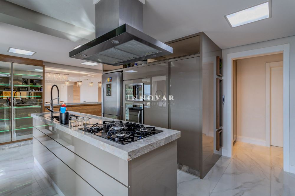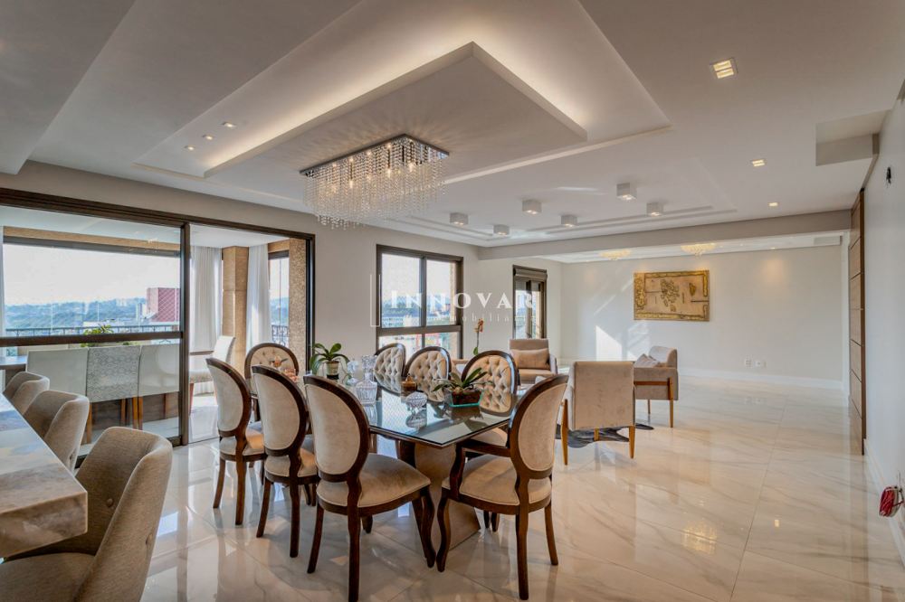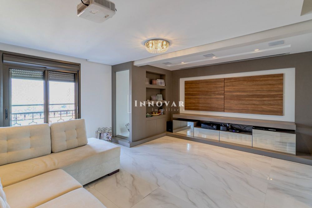 O living amplo e integrado é composto por três ambientes conectados à cozinha gourmet com ilha e ao elegante espaço gourmet, tudo isso com uma vista panorâmica e indevassável para a cidade. Este imóvel é completo em cada detalhe. Conta com uma sala de cinema, um escritório, lavabo, brinquedoteca (com possibilidade de ser convertida em dormitório de hóspedes ou outro escritório), lavanderia, despensa e uma ampla varanda onde você pode relaxar e apreciar o pôr do sol.