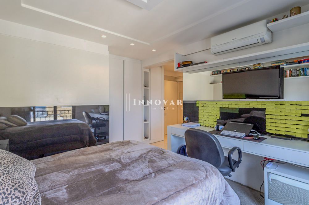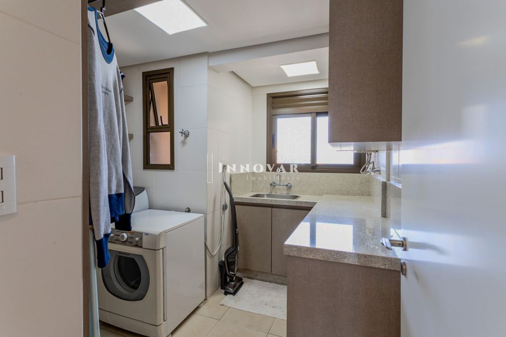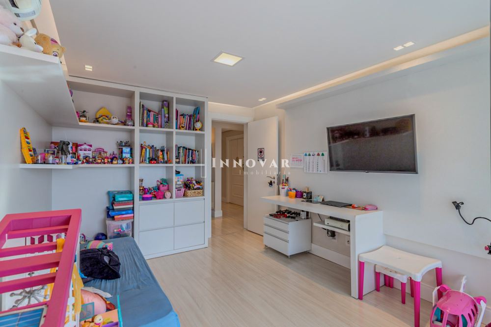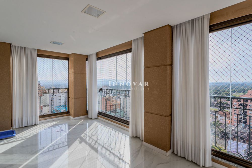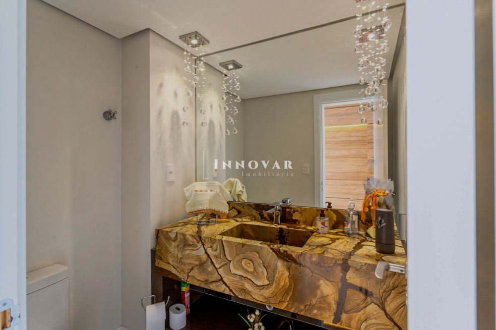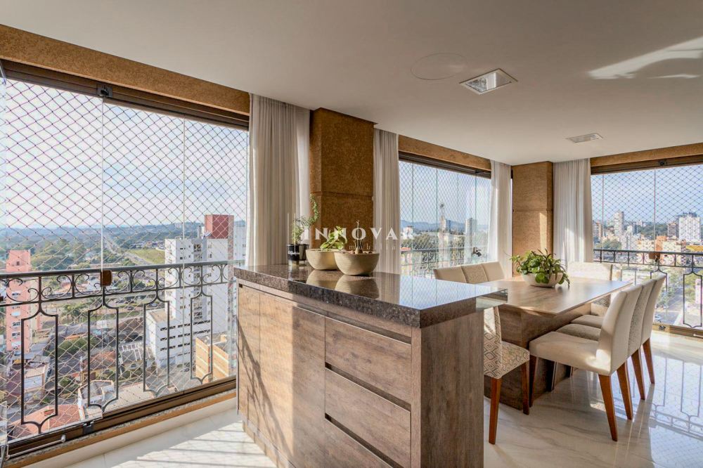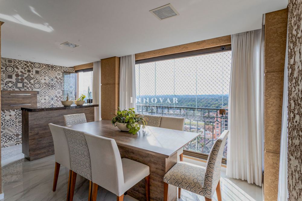 O living amplo e integrado é composto por três ambientes conectados à cozinha gourmet com ilha e ao elegante espaço gourmet, tudo isso com uma vista panorâmica e indevassável para a cidade. Este imóvel é completo em cada detalhe. Conta com uma sala de cinema, um escritório, lavabo, brinquedoteca (com possibilidade de ser convertida em dormitório de hóspedes ou outro escritório), lavanderia, despensa e uma ampla varanda onde você pode relaxar e apreciar o pôr do sol.