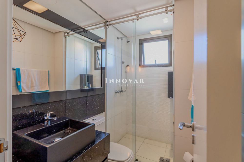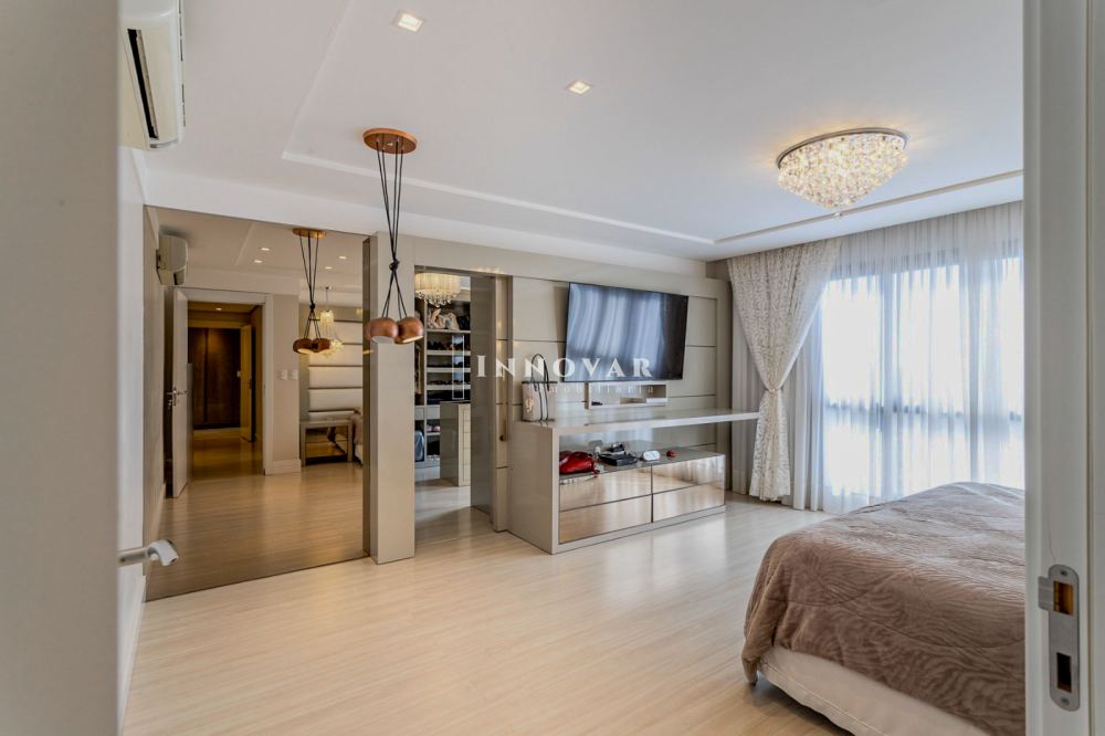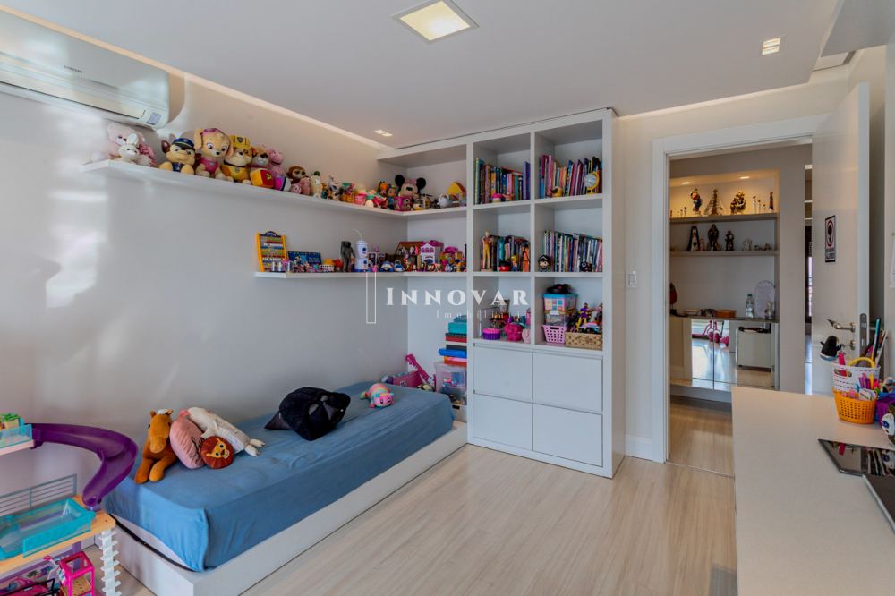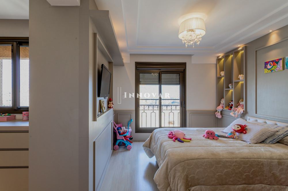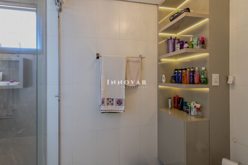 Na área íntima, são 03 amplas suítes, destacando-se a suíte master com um impressionante closet com ilha para joias e área de maquiagem. O banheiro é sofisticado, com cubas duplas e acabamentos de alto padrão.