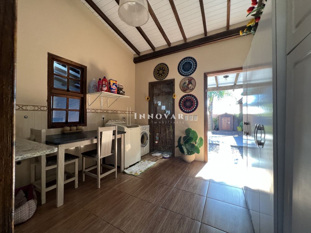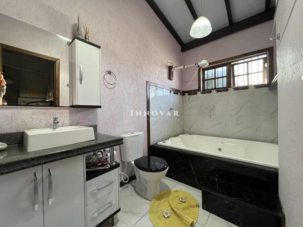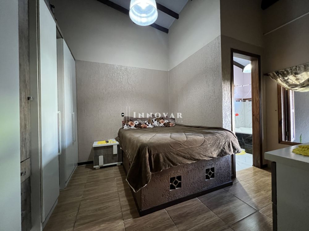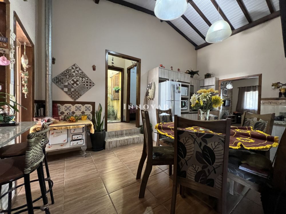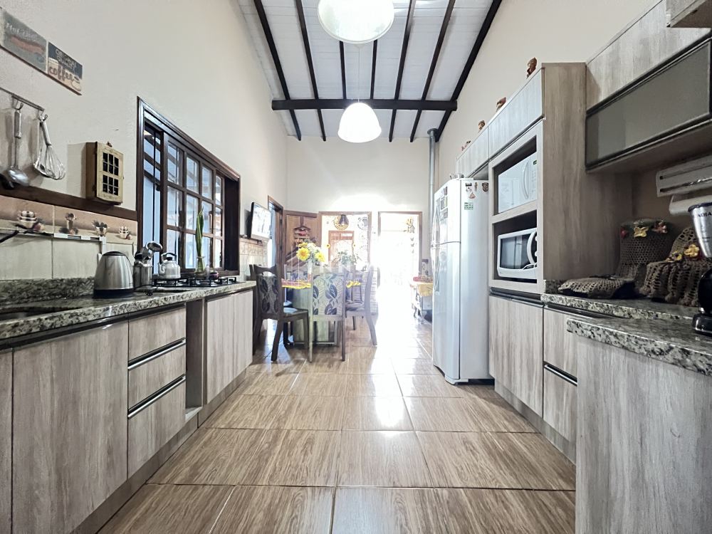 Ambientes amplos, pé direito alto trazendo muito conforto e luminosidade. Quarto principal com banheira, sala de estar individualizada da cozinha, jantar integrado com espaço para o fogão à lenha. Garage coberta para 02 carros grandes, e espaço para mais 01 na rampa. Aproveite os finais de semana com família no quiosque, pátio amplo com espaço para piscina nos fundos, espaço para um belo jardim na parte da frente.