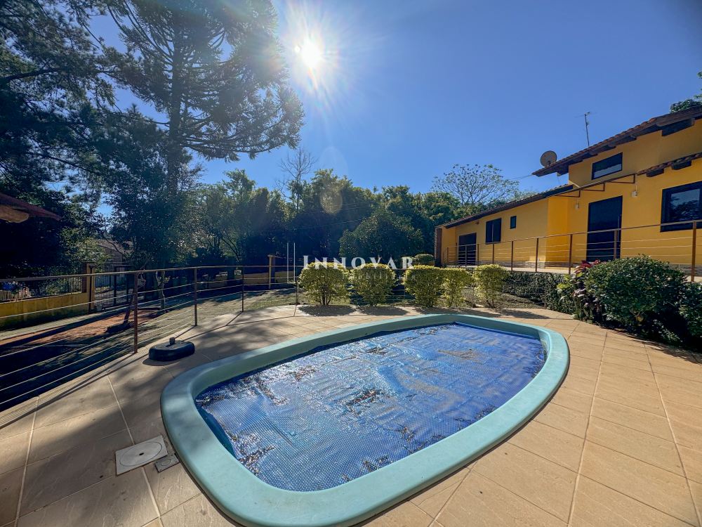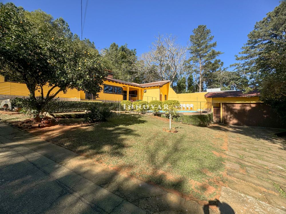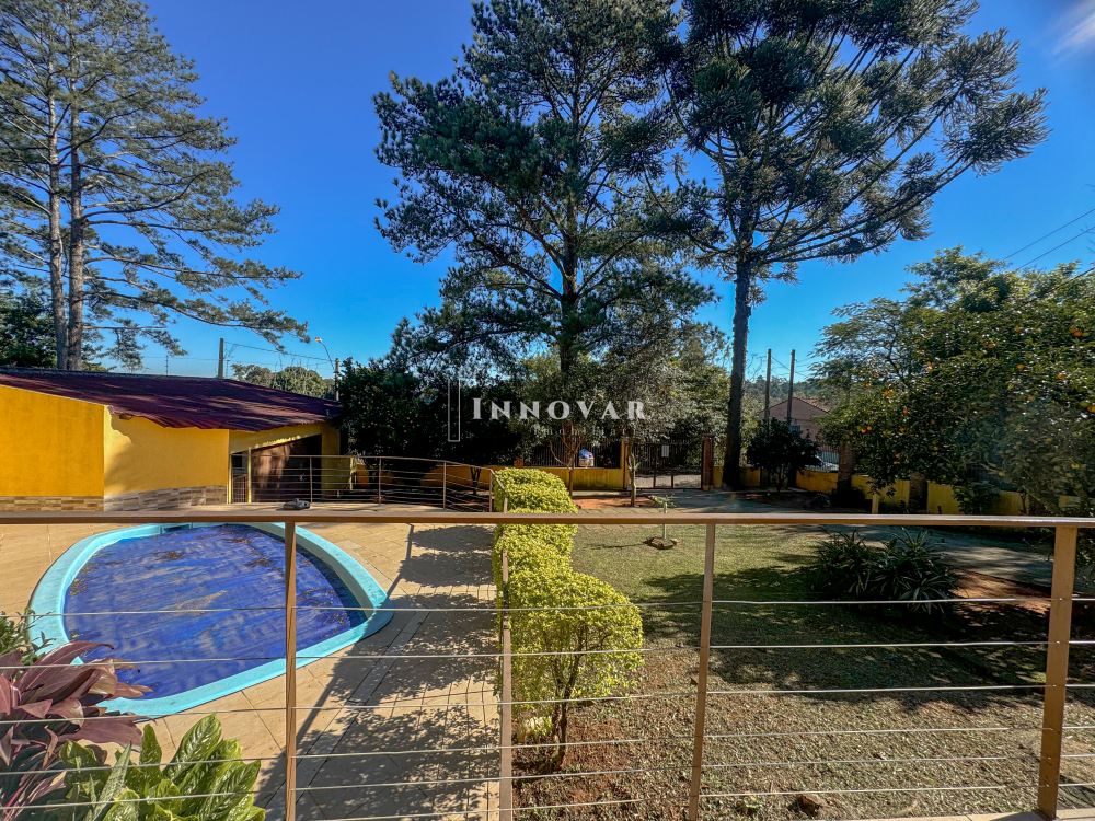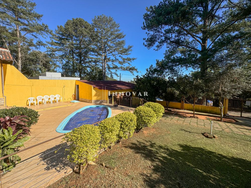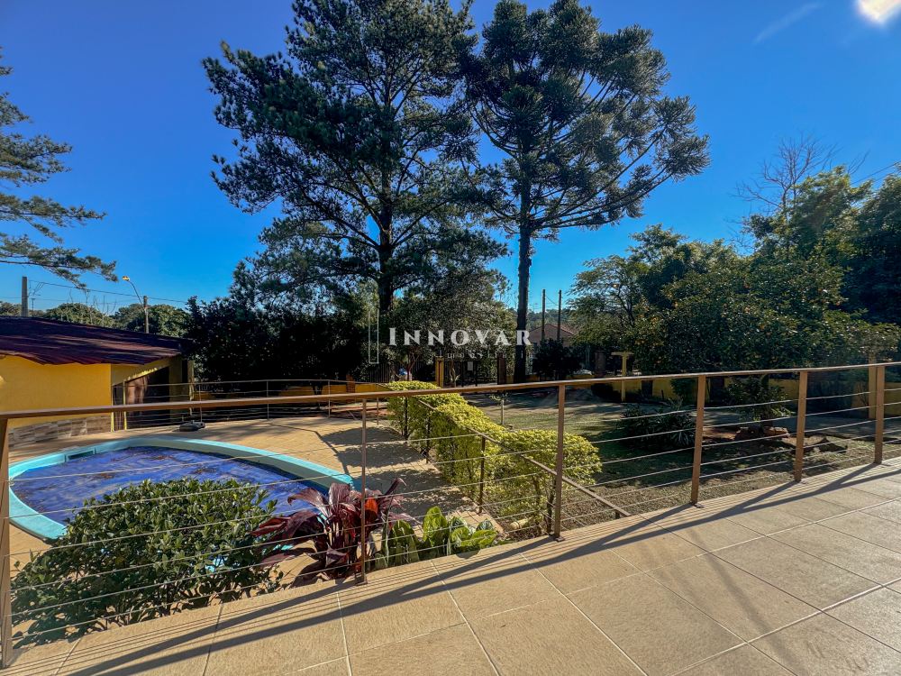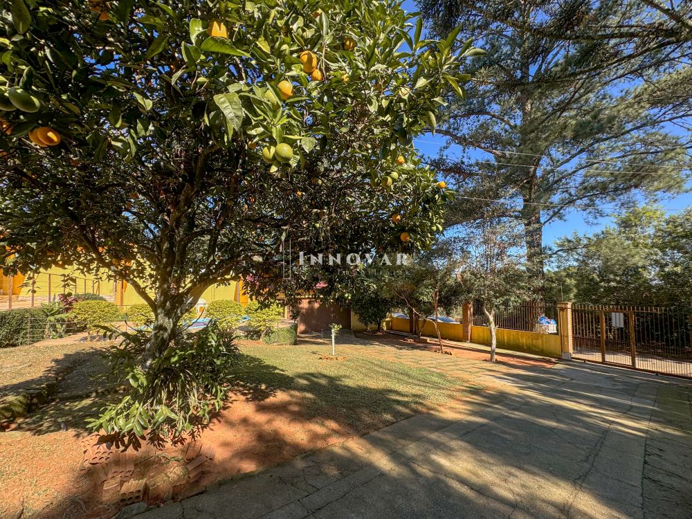 Um amplo terreno com pomar, cerca elétrica, câmeras de monitoramento, portão eletrônico, piscina aquecida, garagem para 4 carros.