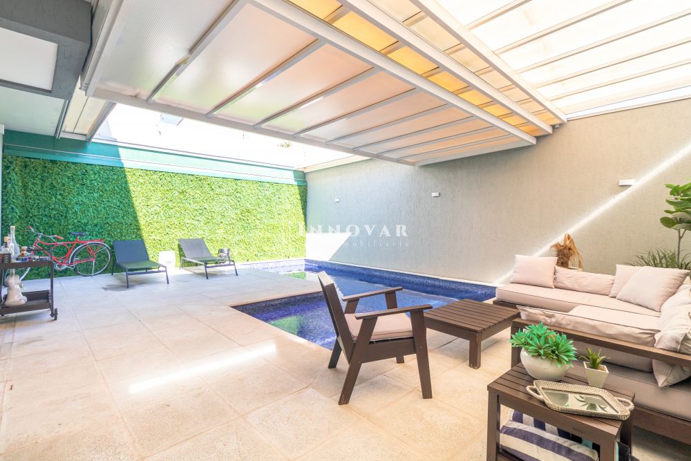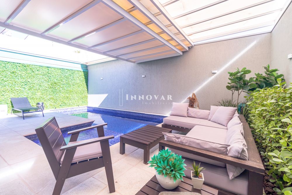 Na área íntima, a Casa oferece 3 confortáveis suítes, todas com closet, sendo 1 delas a suíte master. Cada suíte foi projetada para garantir privacidade e conforto máximo aos seus moradores. As vagas são para 2 carros cobertos e 2 descobertos. A área de descontração você encontra uma piscina térmica de concreto revestida de pastilhas, cobertura retrátil motorizada e poltronas super confortáveis.