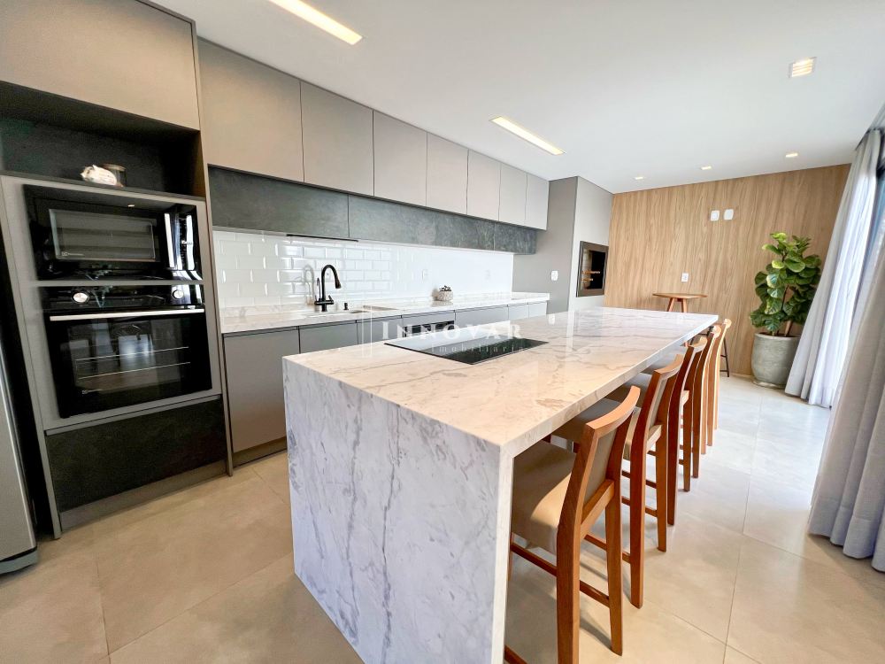 • Cozinha moderna equipada com churrasqueira e uma ilha com cooktop, perfeita para quem ama cozinhar e receber amigos.