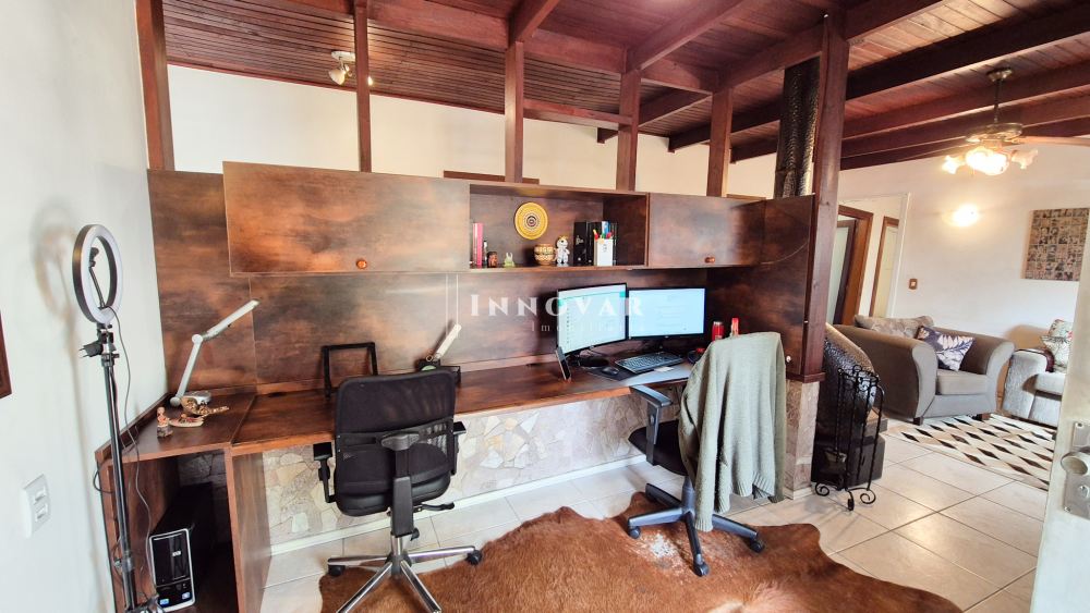 Ela conta com 04 dormitórios, sendo uma suíte, hall de entrada com sala de estar grande, cozinha e sala de jantar, home office, 02 banheiros, garagem coberta para 02 veículos e mais 02 vagas descoberta, churrasqueira, duas caixa d'agua, pátio na frente, lateral e fundos todo fechado com muros e cerca elétrica e portão eletrônico.