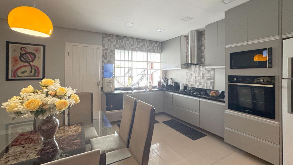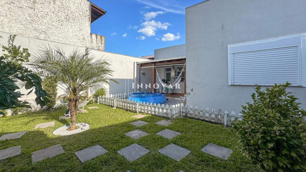 Casa charmosa e bem localizada, com 05 quartos, sendo 02 suítes. Conta com pátio frente e nos fundos, ambos com jardim, oferecendo espaço e privacidade. Sala de estar ampla e cozinha integrada à sala de jantar, tudo em um ambiente moderno e funcional. Muro alto e vaga para 1 carro, garantindo segurança e conforto. Ideal para quem busca um lar confortável e bem planejado.