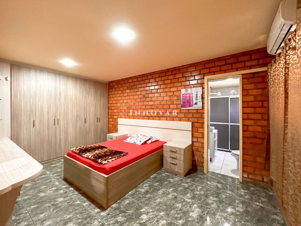 O andar superior possui 1 suíte, 1quarto, banheiro, sala de tv com ampla sacada fechada.